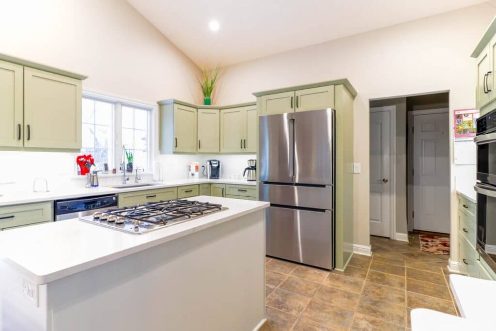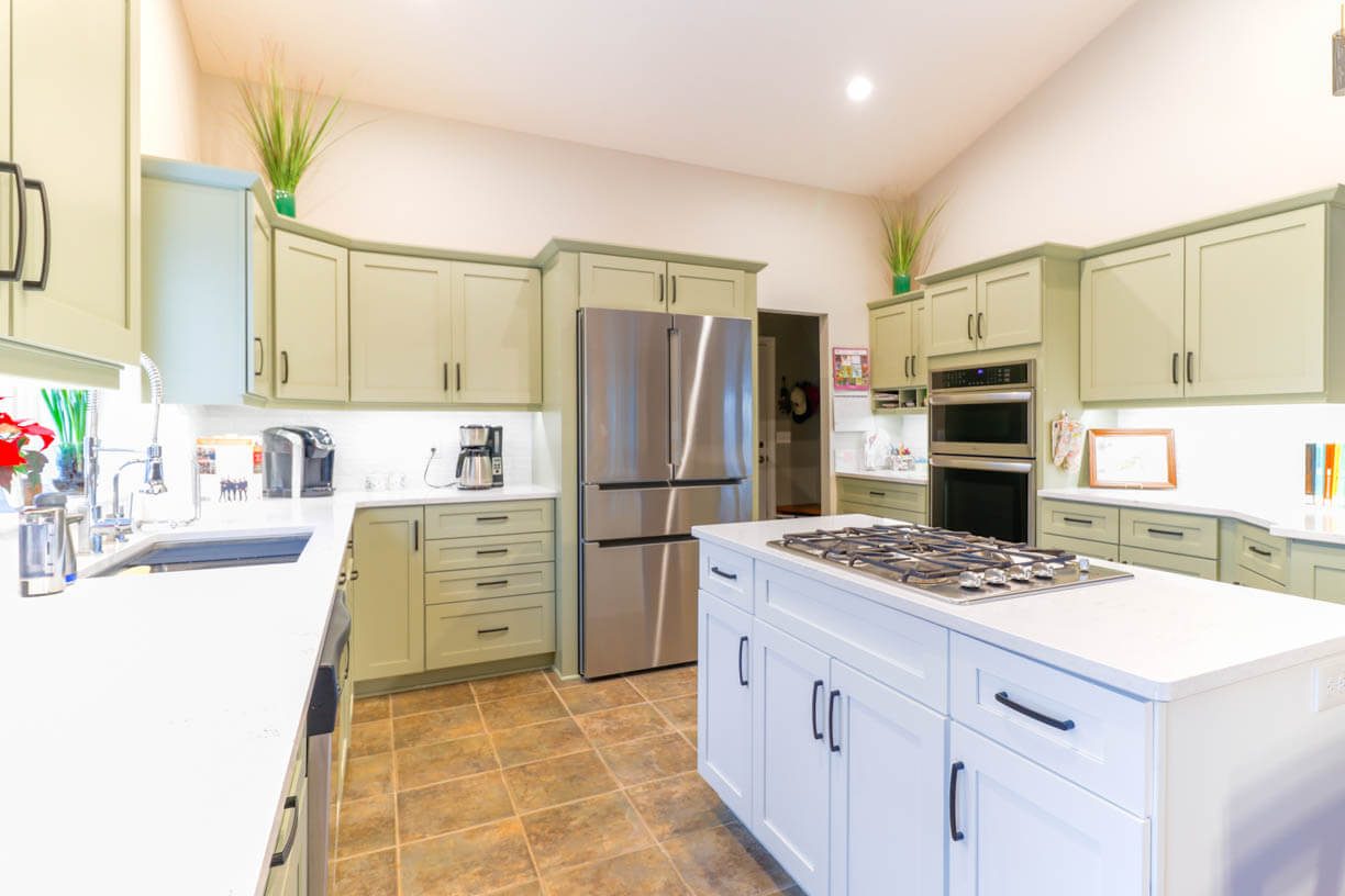 This is a wonderful example of how much impact can be done to a kitchen while keeping costs lower. Because the size and functionality of the kitchen was good, the option to refresh the kitchen through cabinet painting, new doors, and new drawers, became a great option to breath life into the outdated dark kitchen. The updates to the backsplash tile with the Marlow Cloude Matte 3x12 subway tile gives a brand new look versus the outdated backsplash tile that existed previously. Because the kitchen layout stayed the same, the homeowner was able to keep plumbing, HVAC, and electrical in the same locations which saves significant costs on the remodel. The ovens and refrigerator were updated and modifications to the cabinet at the oven were required to fit the new oven sizes. The homeowner was able to get this kitchen remodel done in a relatively short timeframe and the kitchen was ready for them in time for the holidays!