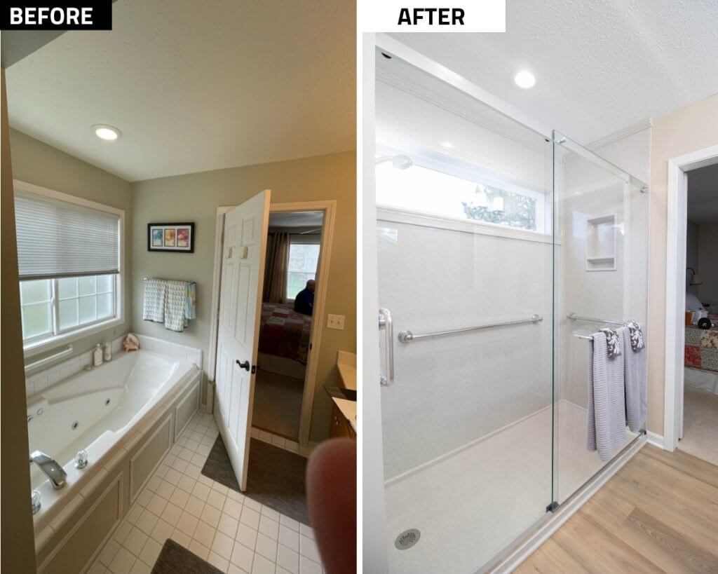 - Remove alcove tub to provide location for large walk-in shower.