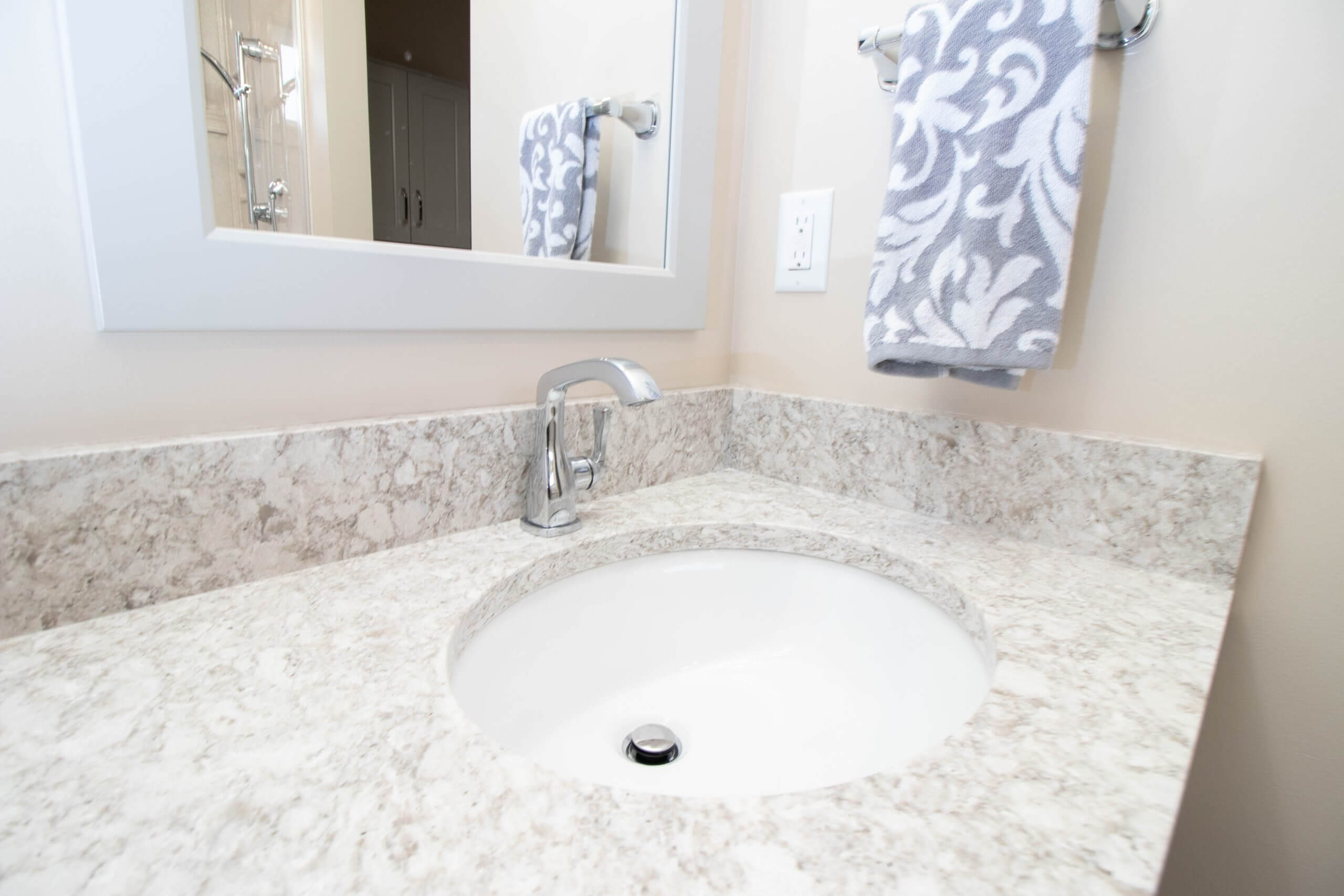 The walk to the basement to do the laundry was becoming more difficult and the goal was to remodel the bathroom to make room for the stacked washer and dryer by moving the existing shower in place of the alcove tub. Remodel of an existing bathroom to accommodate the laundry in place of the existing shower. Remove existing alcove bathtub with replacement of a larger walk-in shower. Replace existing vanity and install new quartz countertop. Update to all electrical and plumbing fixtures. Install new toilet and commode storage.