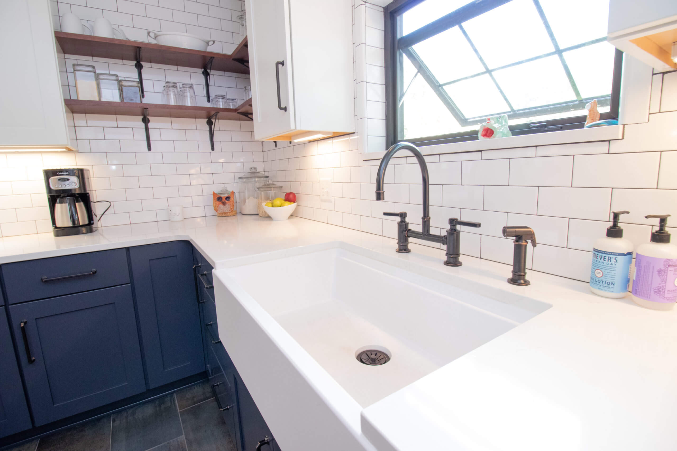 - Install new semi-custom cabinets with soft-close doors and drawers.